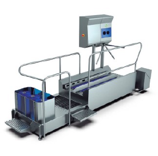 Entrata igienica completa di disinfezione mani. All’ingresso è presente un lavastivali dotato di tre spazzole verticali che agiscono sul gambale e un corridoio con disinfezione suole. Durante la fase di disinfezione delle mani tramite nebulizzazione del