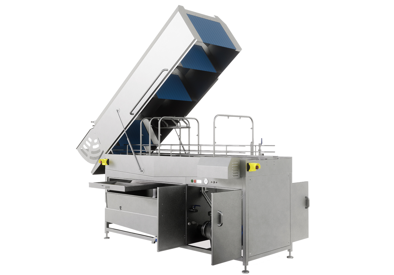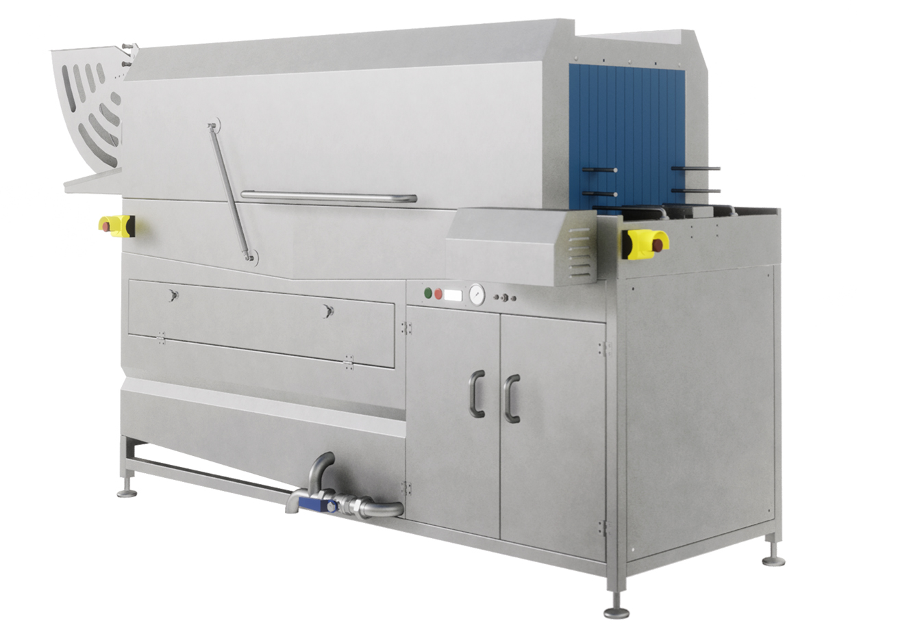 Vasca di lavaggio: 300 litri Riscaldamento elettrico o a vapore. Pompa lavaggio: 4 kW PLC di controllo.